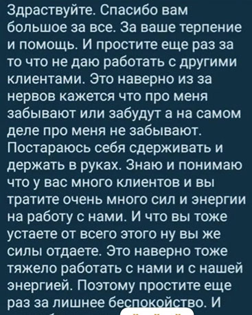 Хочу поблагодарить Надежду за неоценимую помощь моей семье. Она избавила брата от тяги к алкоголю, когда мы с мамой уже отчаялись и были увверены, что потеряли его безвозвратно. Спасибо Вам за огромную помощь и поддержку в такой ужасной ситуации!